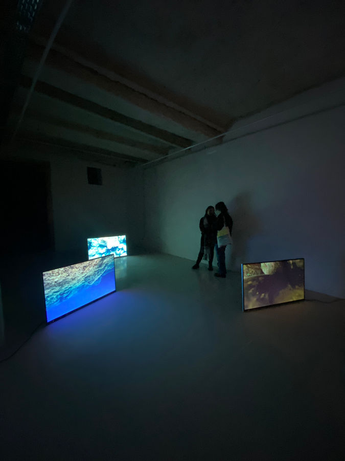In the video installation Meddle, the camera functions almost as an autonomous entity, immersed in an environment where technology and the sea engage in dialogue. This visual realization is complemented by the sonic textures of Les Biologistes Marins, whose rhythms and fluctuations amplify an intermedial atmosphere, creating relationships, patterns, and tones that form various connections.
